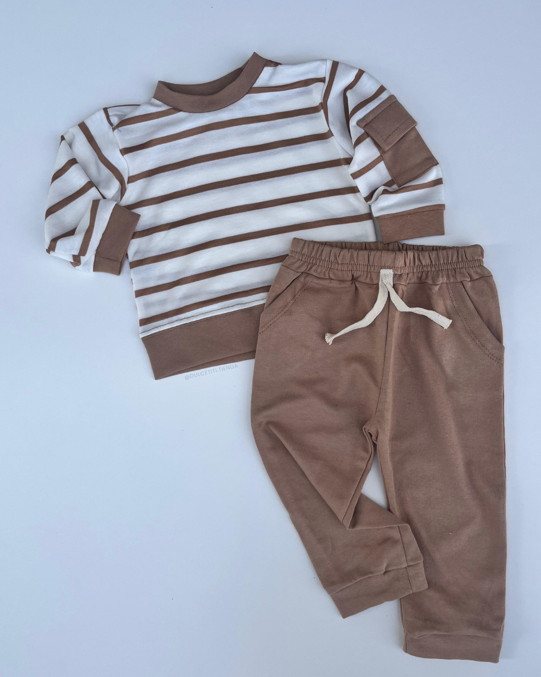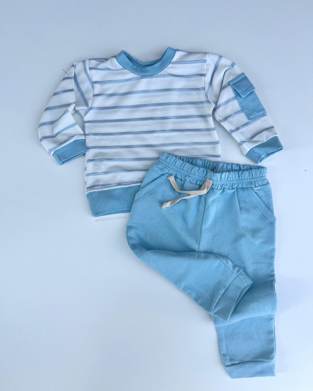 conjunto de buzo con bolsillo en manga + pantalon liso con bolsillos.